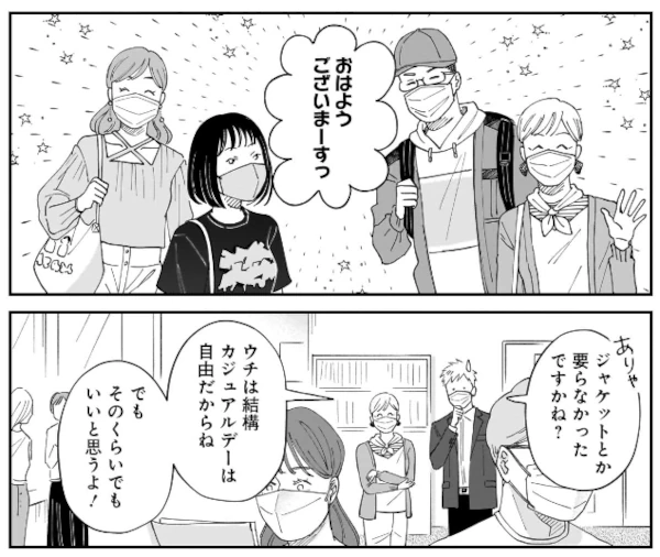 The manga carefully depicts various dynamics within a Japanese company—between boss and subordinate, coworkers, seniors and juniors, or employees from other departments. Learners can pick up on subtle differences in tone and nuance across these relationships.