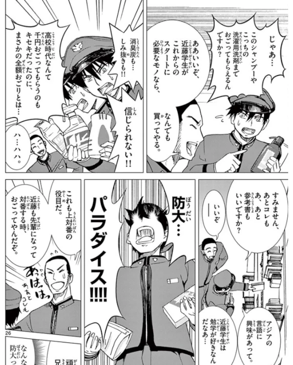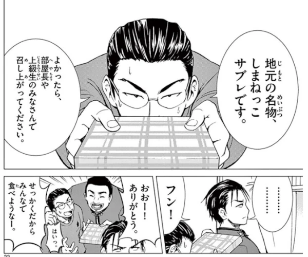 The story includes repeated scenes that may feel like power harassment, with upperclassmen treating underclassmen in harsh and even cruel ways. Readers who are sensitive to such depictions may want to approach with caution. That said, understanding why such strict treatment exists—and what it aims to achieve—forms an important part of the narrative itself.