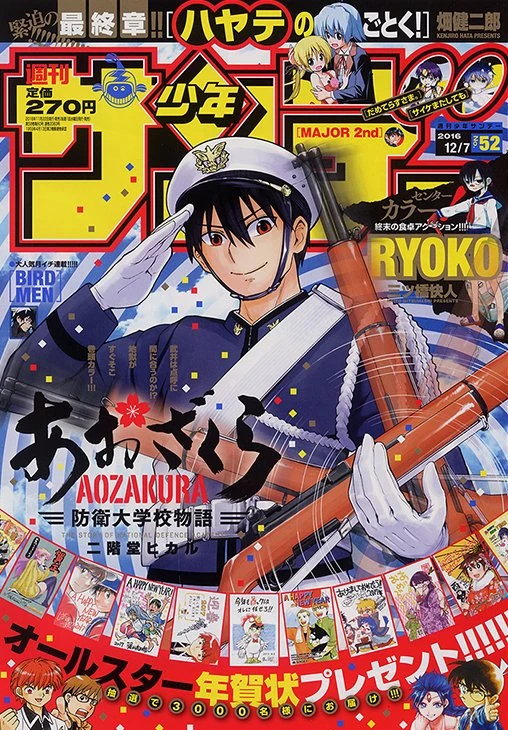 When introducing Aozakura: Defense Academy Story, it’s helpful to understand the magazine that publishes it: Weekly Shonen Sunday. Sunday has a long-standing reputation for a very particular kind of storytelling—one that sets it apart from other major shonen magazines in Japan.