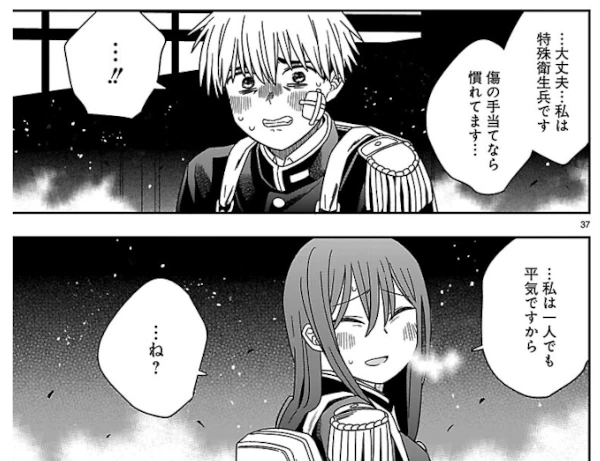 Despite its non-everyday setting, this manga features an unusually large amount of grounded, polite Japanese. Honorific speech reflecting hierarchical relationships within military organizations, as well as reserved and distant ways of speaking rooted in the characters’ personalities, are depicted in detail.