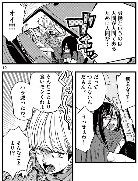 This manga is a dystopian story set in a world after the collapse of civilization. Although the characters are frequently drawn into dangerous and unsettling situations, the pop-art visual style and lively, lighthearted characters keep the story feeling energetic and engaging, leaving readers with a surprisingly refreshing aftertaste.