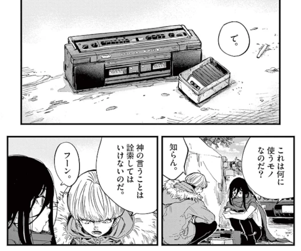 In the manga introduced here, the protagonist searches for objects that symbolize the civilization that existed before the world’s collapse. These items are meant to be offered to God—but they are not futuristic machines or advanced technology.