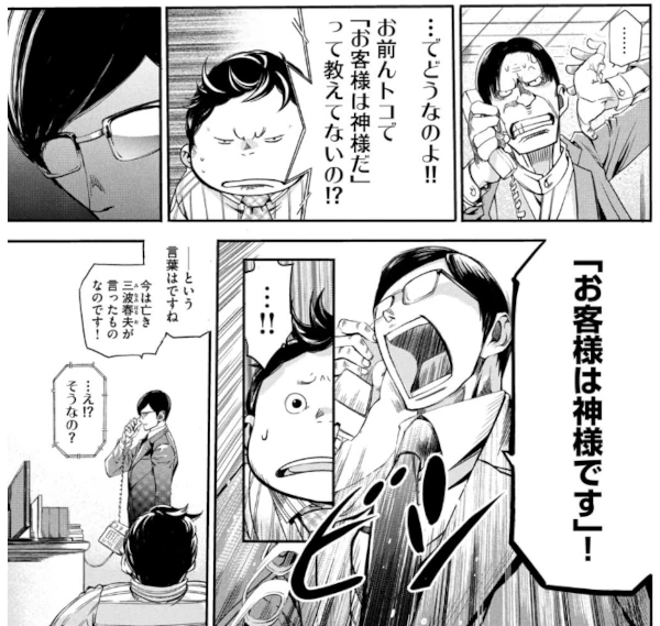 In a business-themed manga, you might come across the phrase: 「お客様は神様です」 “The customer is God.”