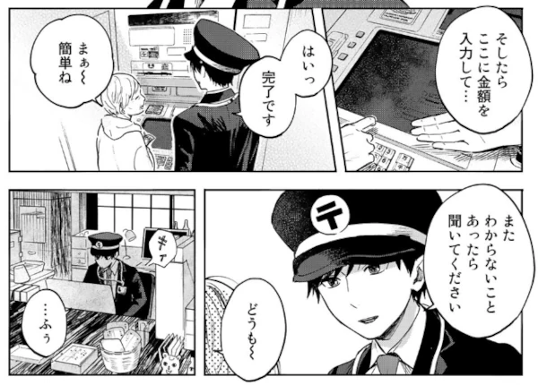 This manga carefully portrays his slow-paced life, his interactions with the people he meets, and the quiet rhythms of everyday living.