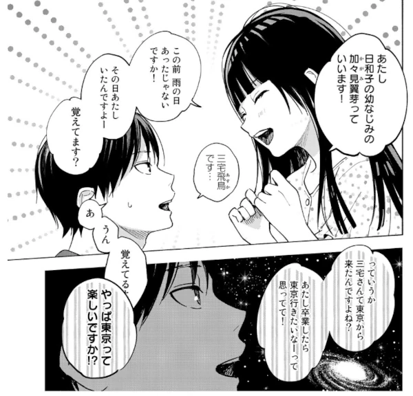 As the story progresses, the relationship between Miyake and Hiyoko, the high school girl he lives with, gradually becomes closer.